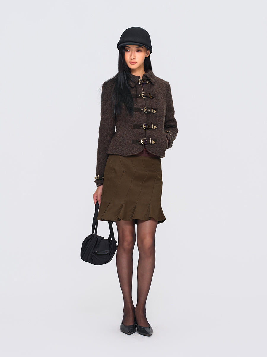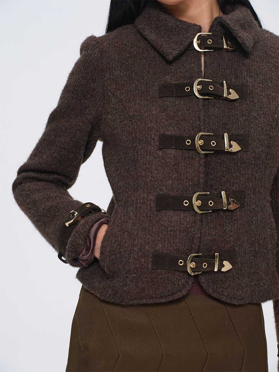 Dotyears Brown Short Wool Coat with Metal Buttons and Special Backing Fabric