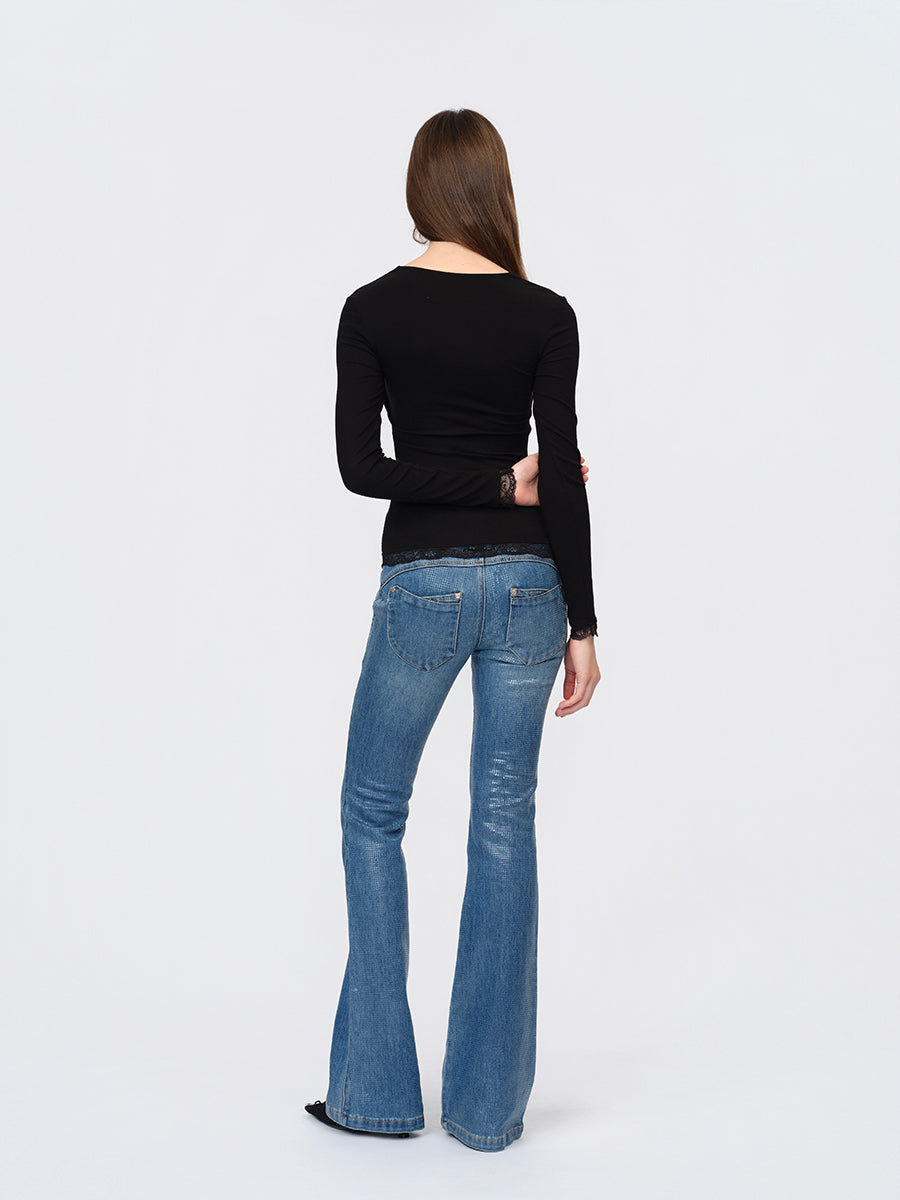 Dotyears Black Two-in-One Bustier Top with Lace Panels