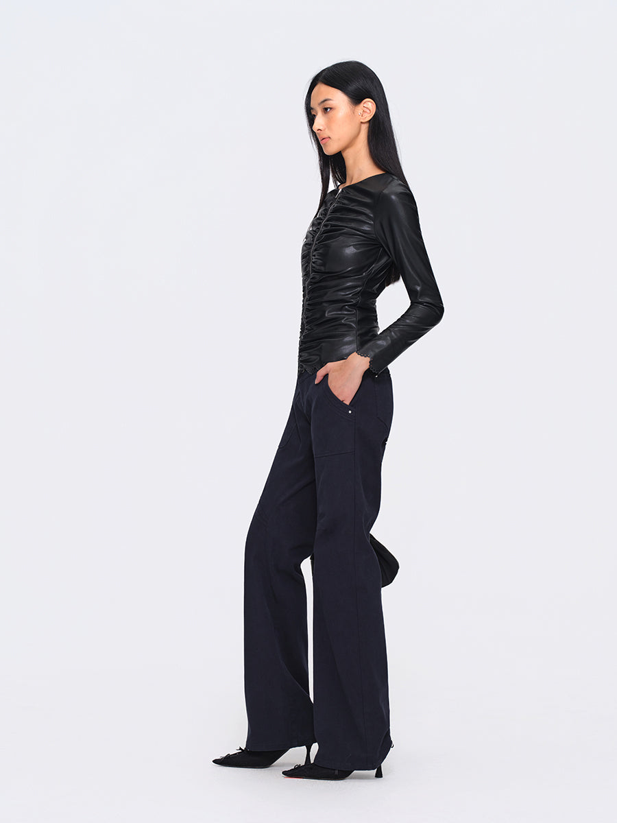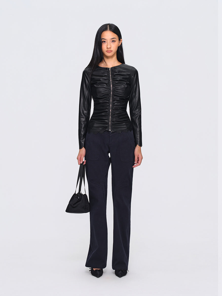 Dotyears Crinkled Laser-Cut Leather Jacket