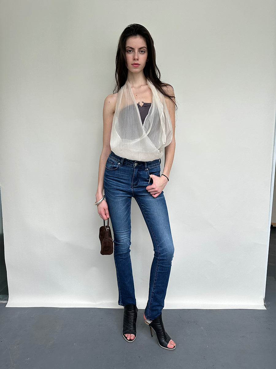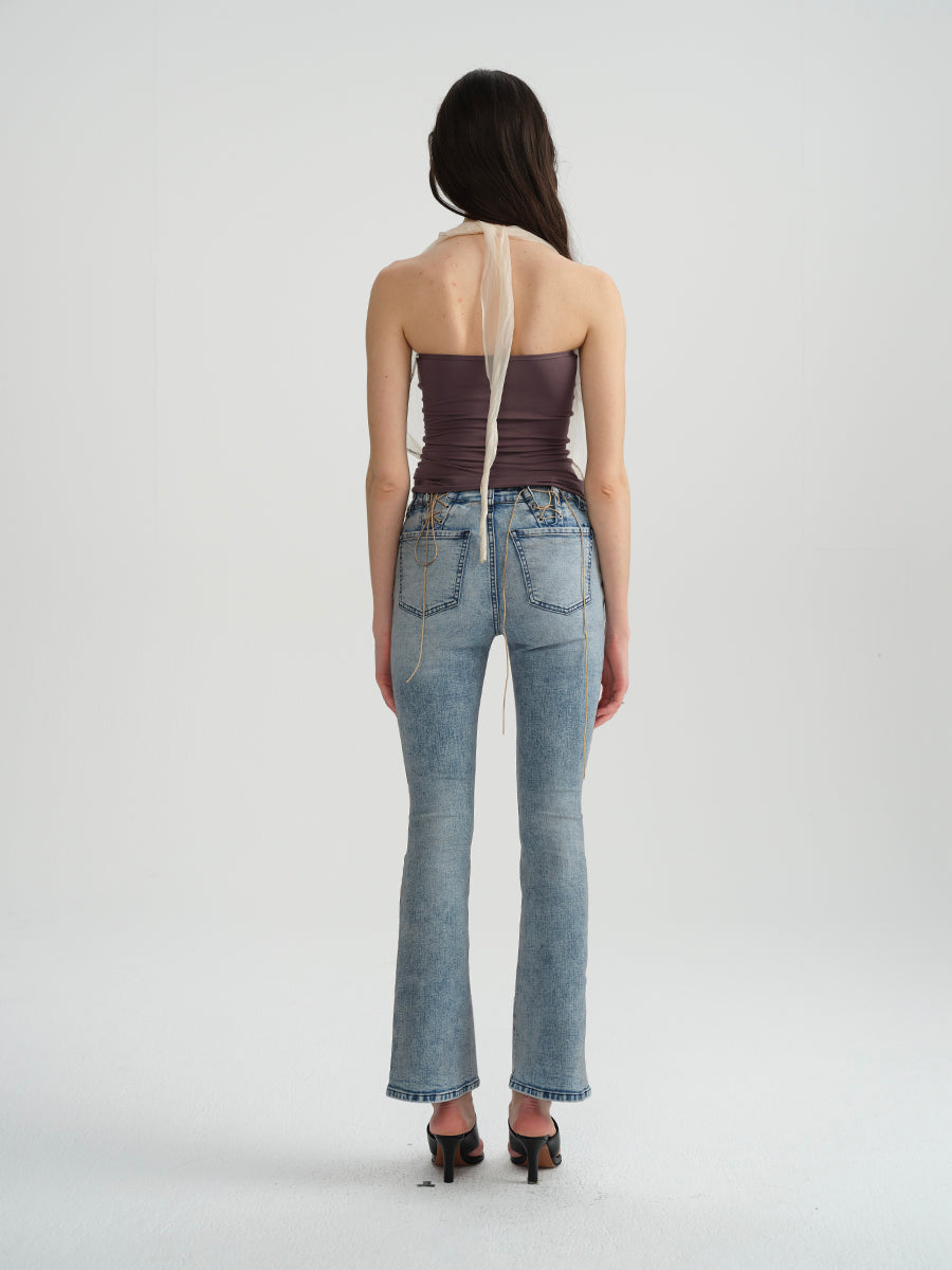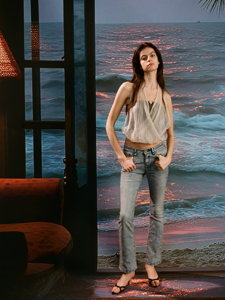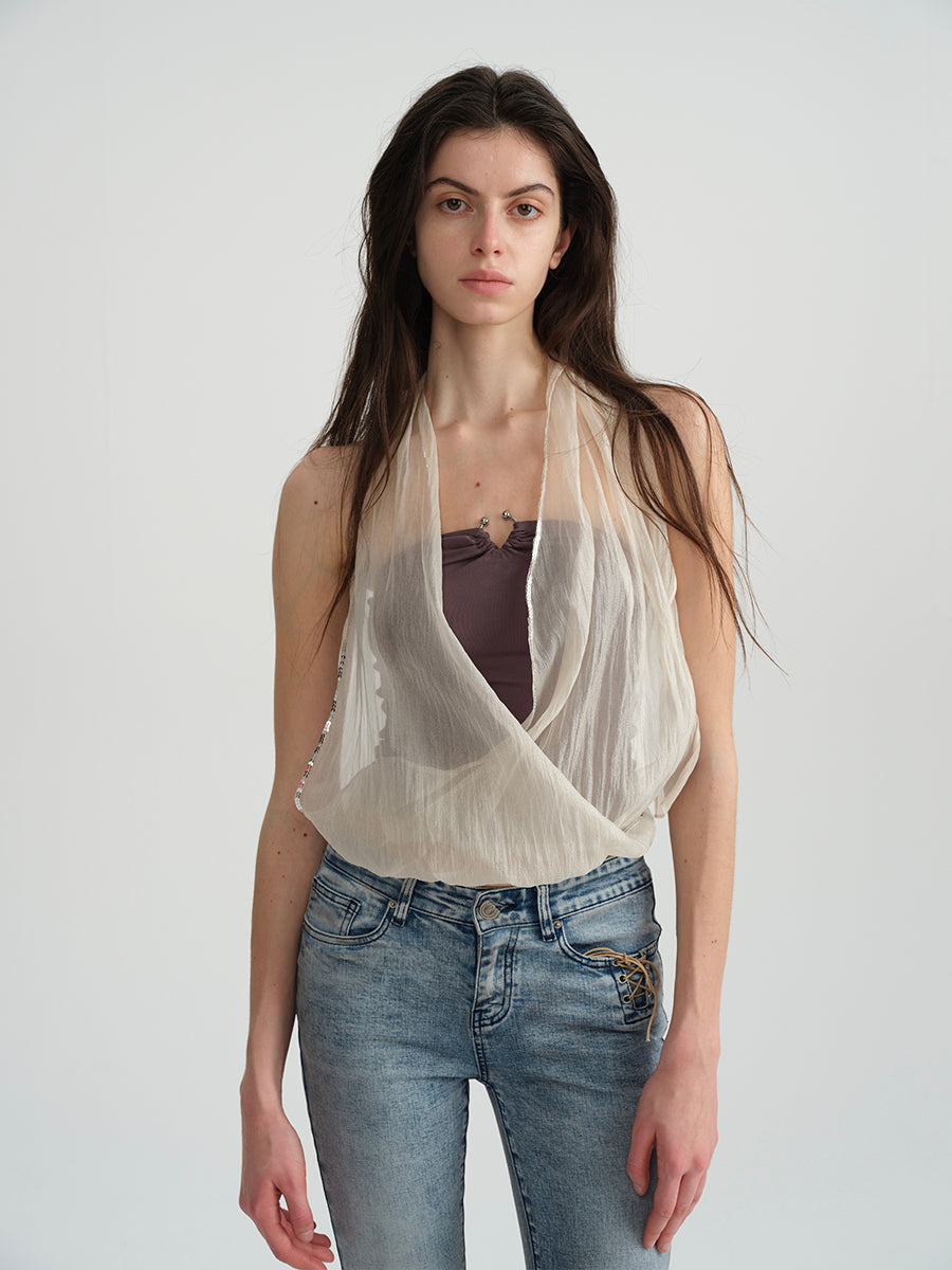 Dotyears Embroidered beaded yarn bandeau fake two-piece top