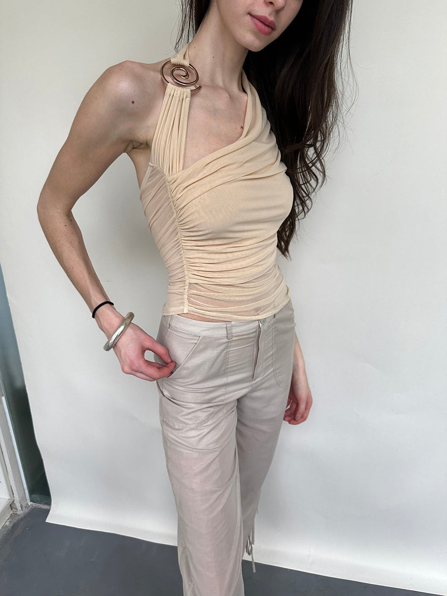 Dotyears Forest Whispers Collection - Metallic halterneck suspender mesh pleated top