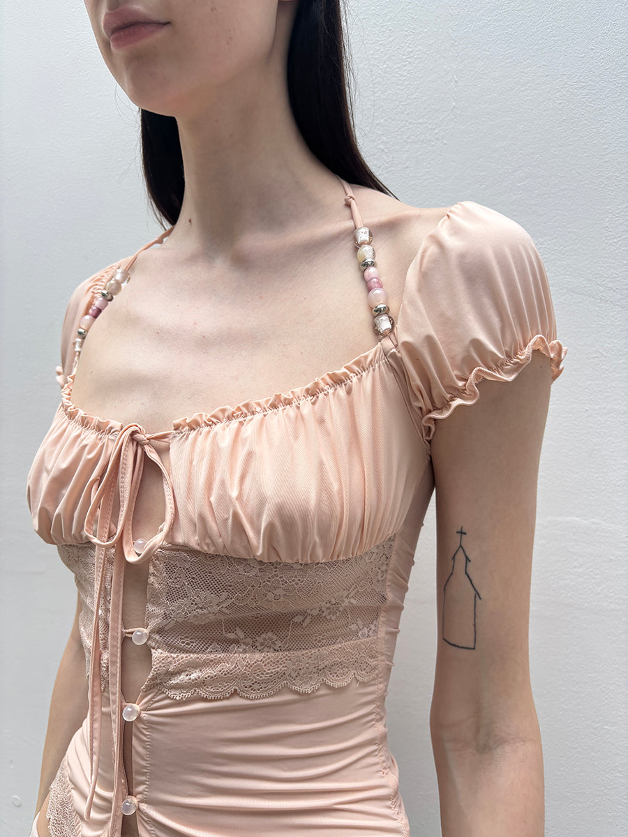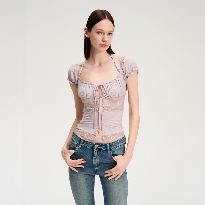 Dotyears Forest Whispers Series - Light-colored lace stitched beaded cardigan