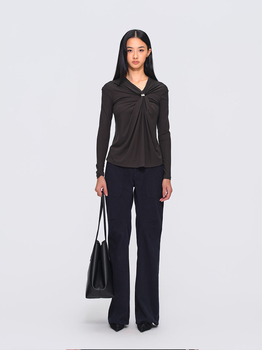 Dotyears Gray Corset Top with Gathers and Detachable Metal Buttons