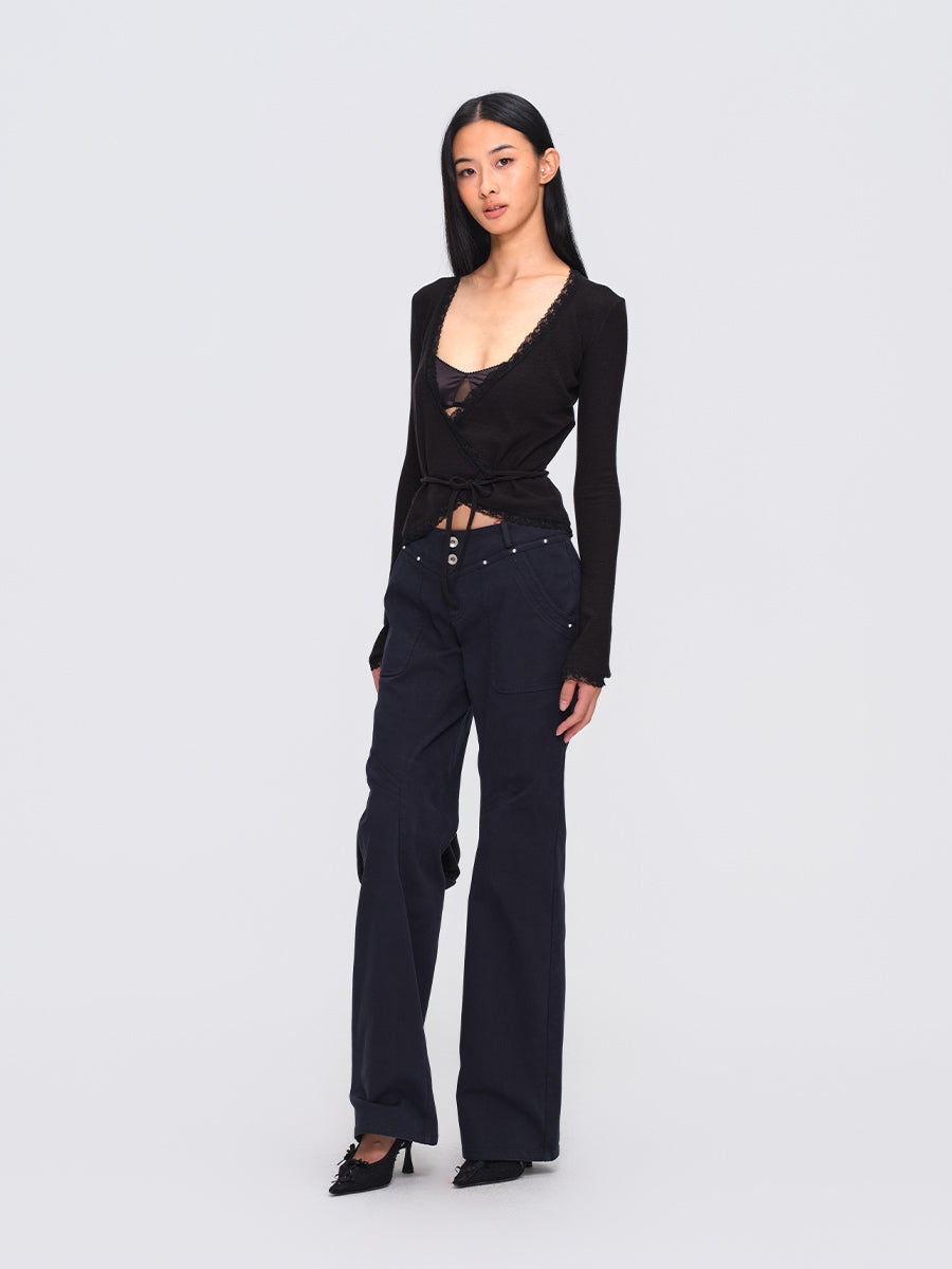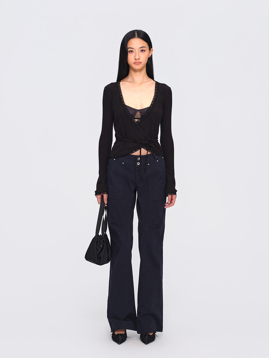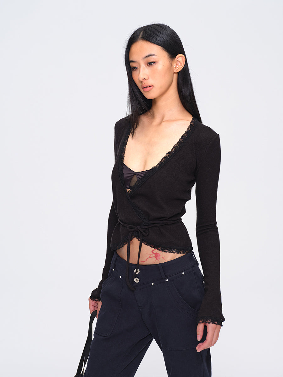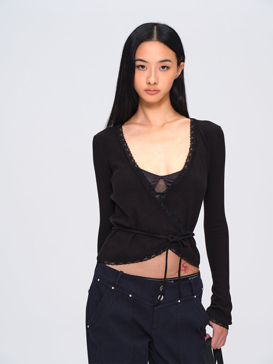 Dotyears Two-Tone Cross-Wrap Cardigan with Lace Insets
