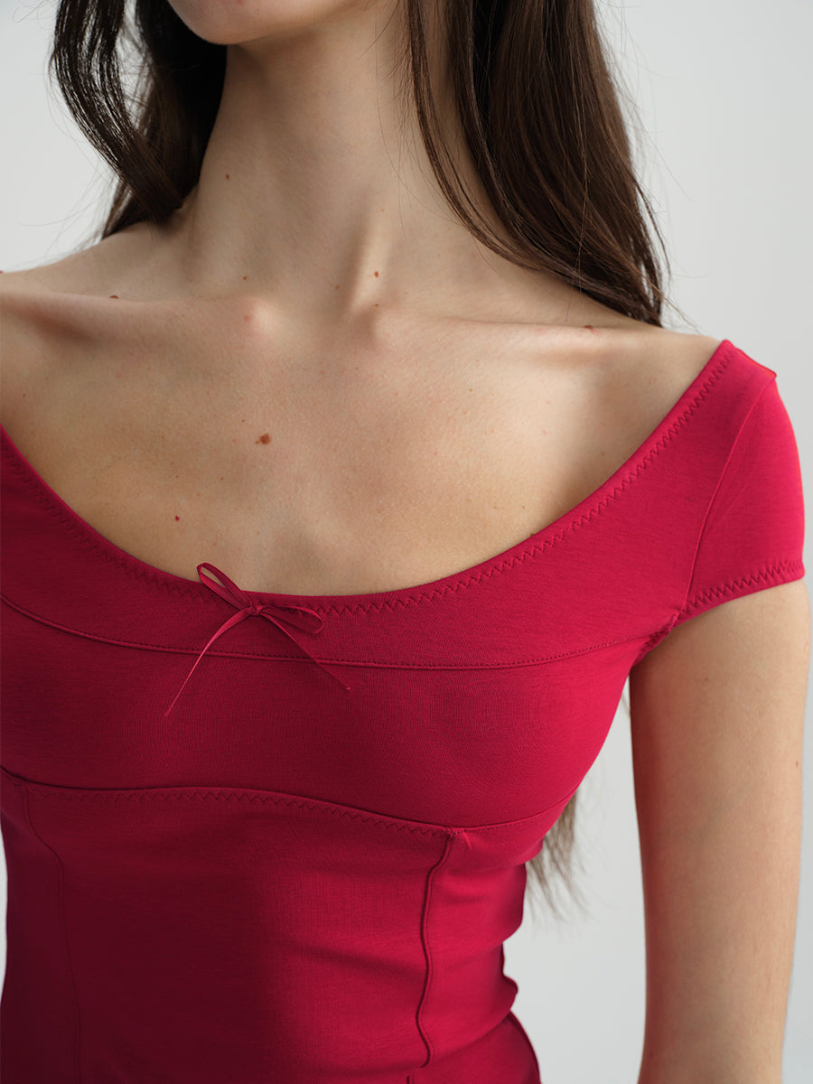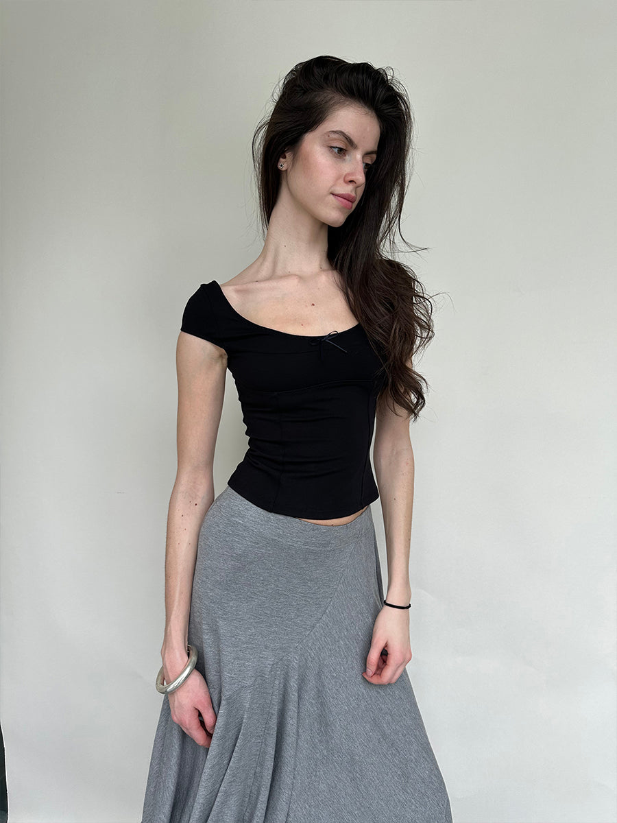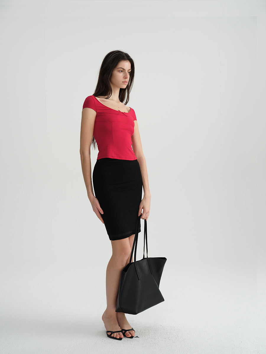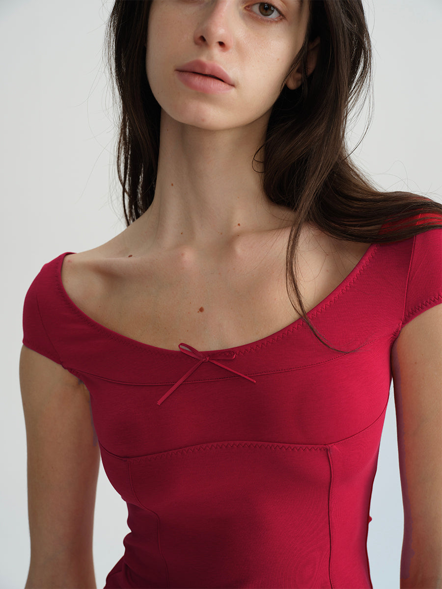 Dotyears Two-tone herringbone scoop neck basic fit slim fit T-shirt