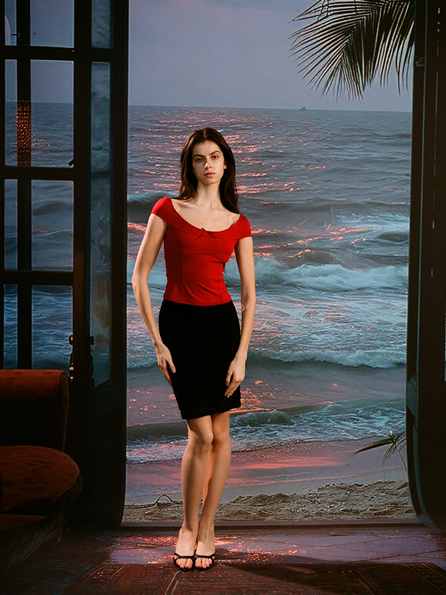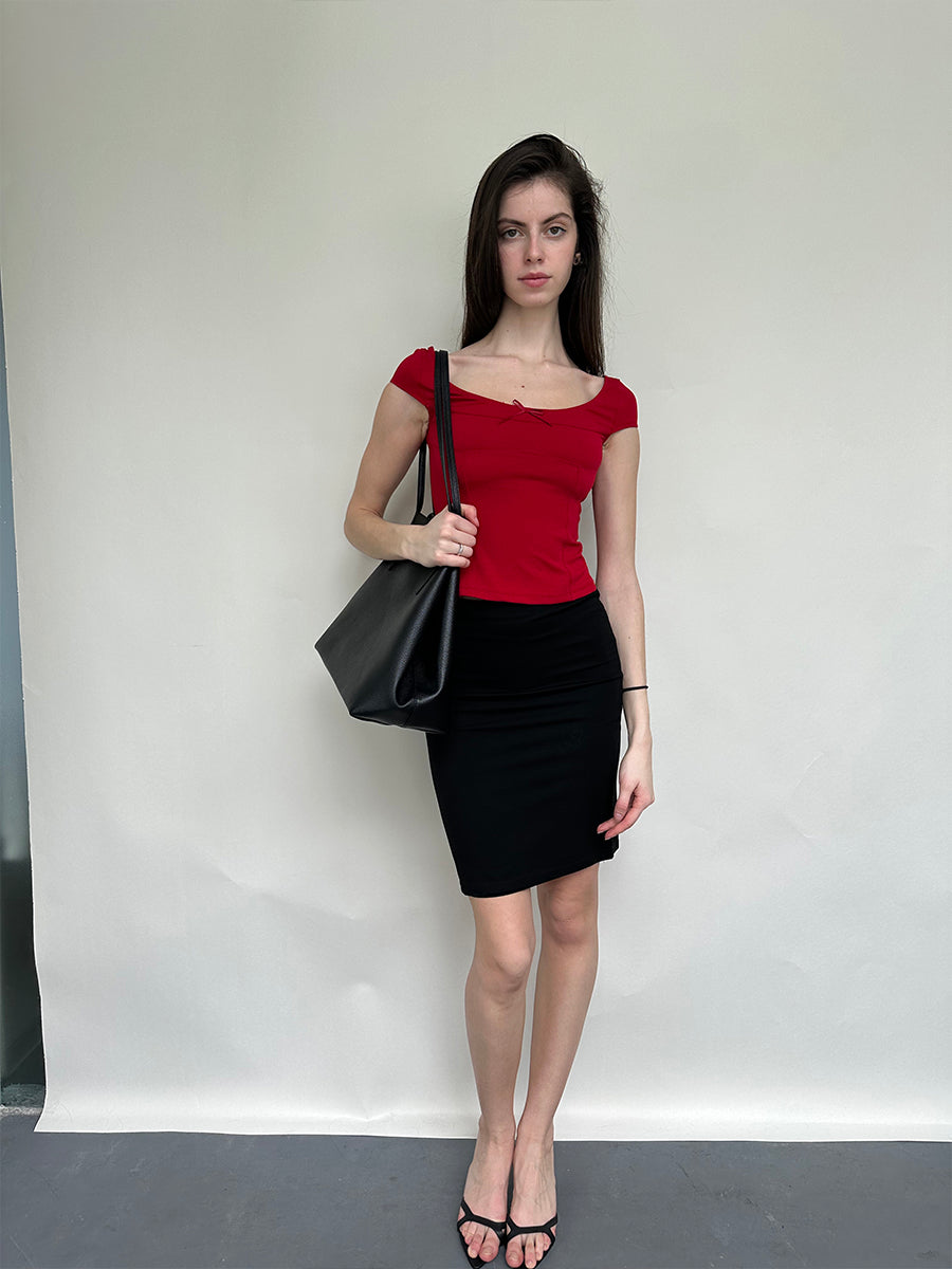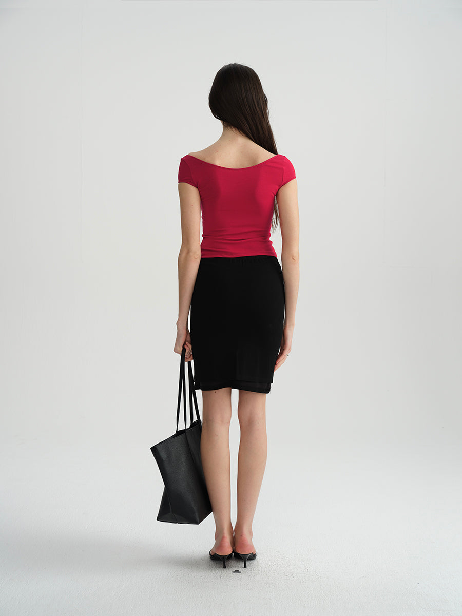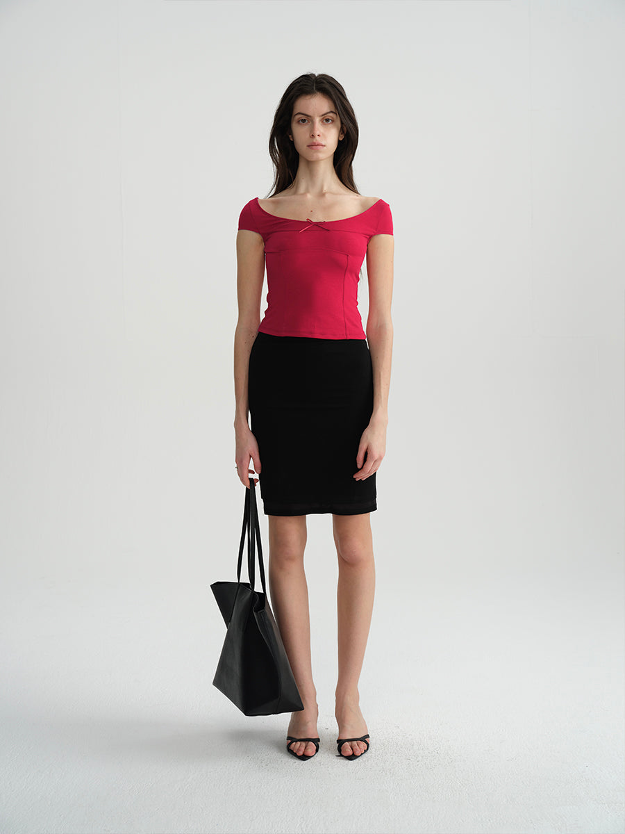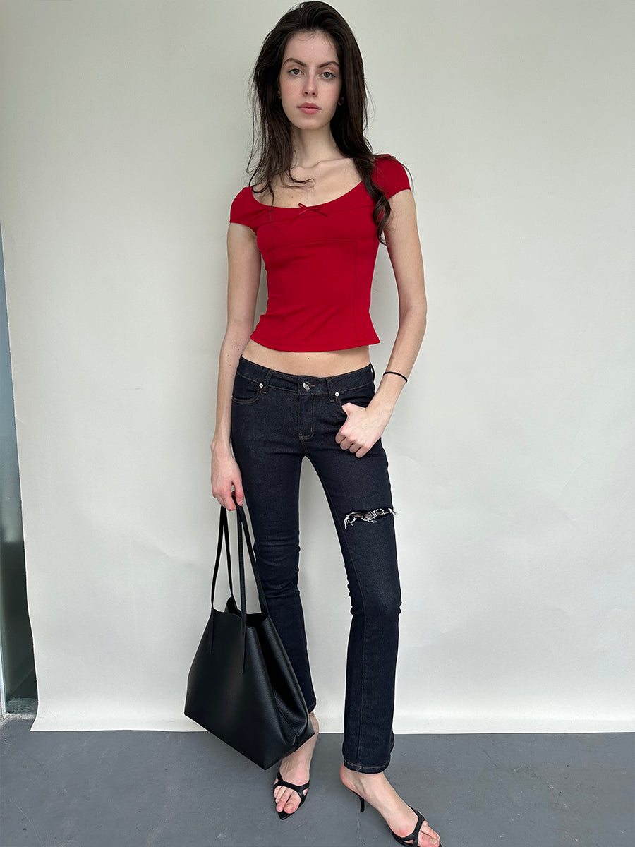 Dotyears Two-tone herringbone scoop neck basic fit slim fit T-shirt
