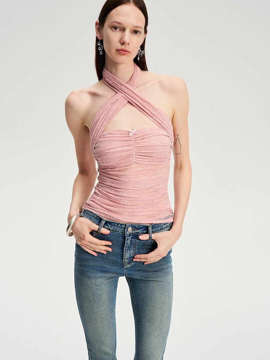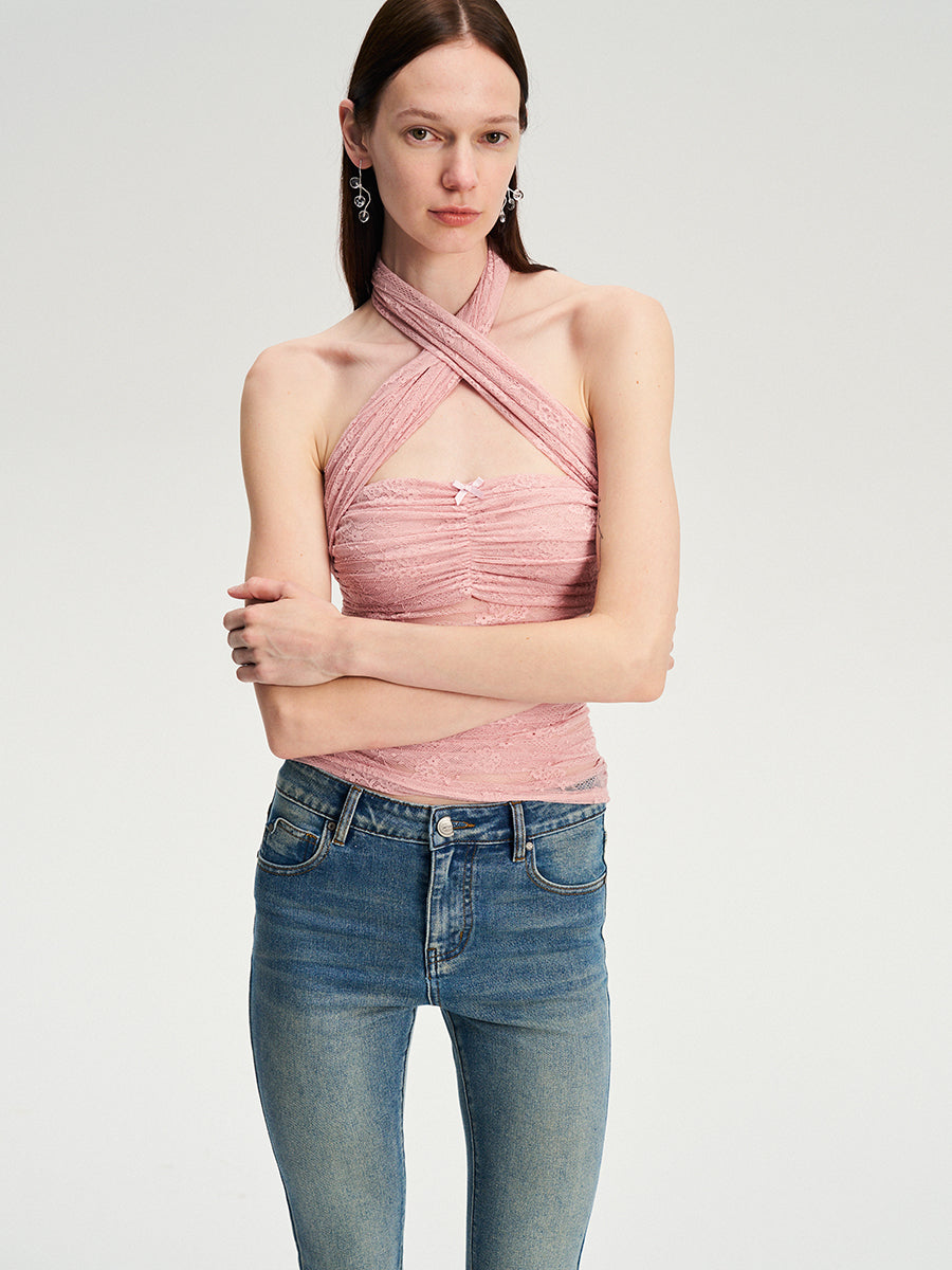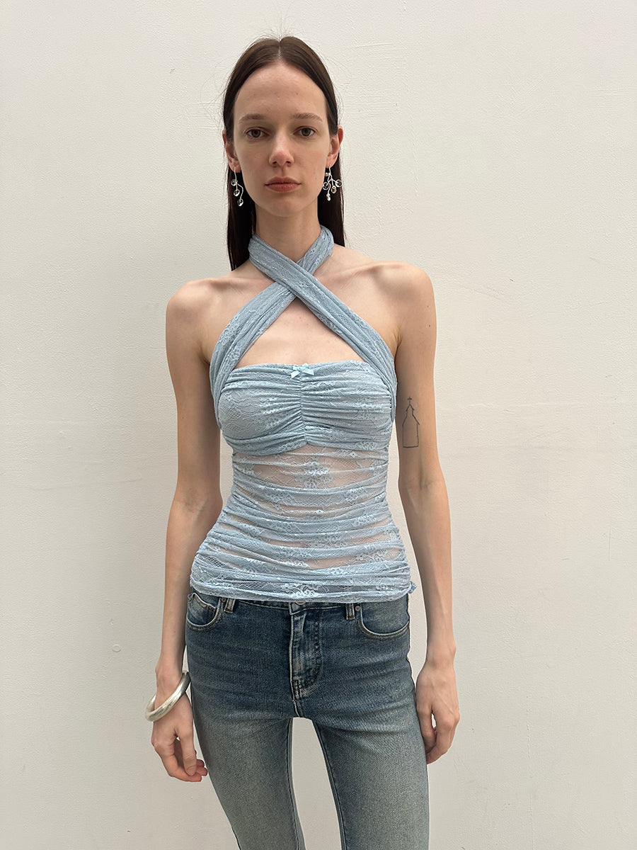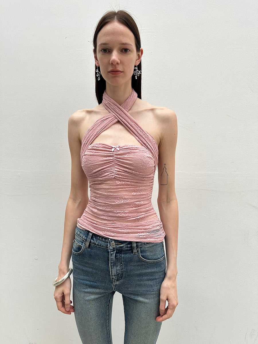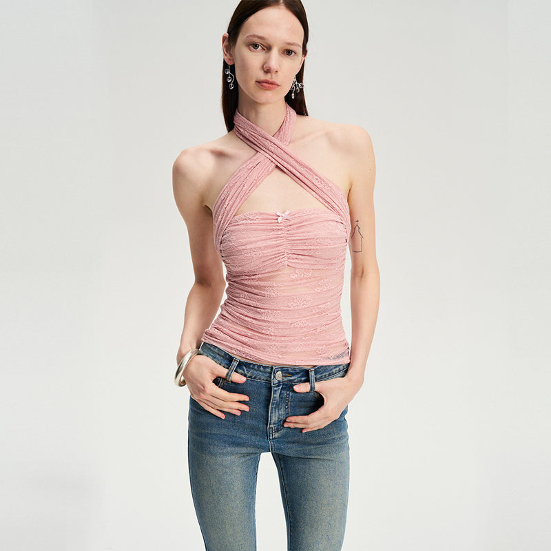 Dotyears Two-tone lace bow charm with cross-neck suspenders