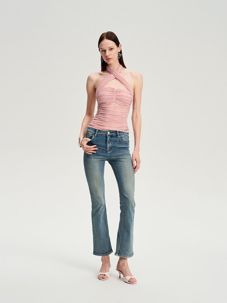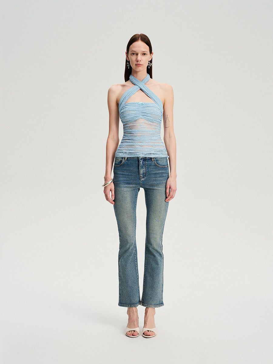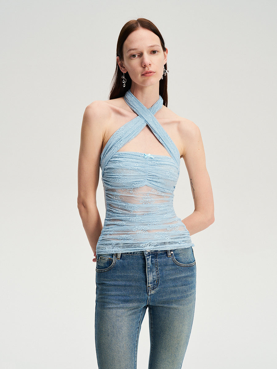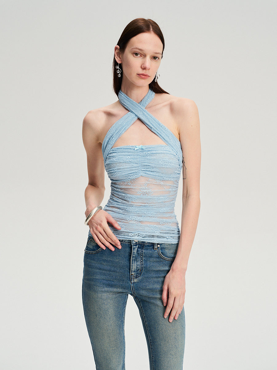 Dotyears Two-tone lace bow charm with cross-neck suspenders