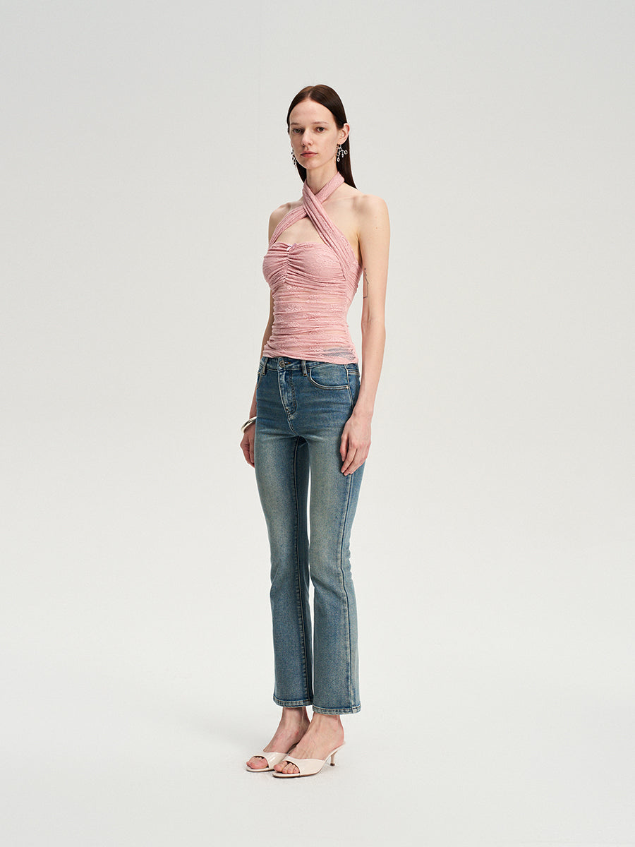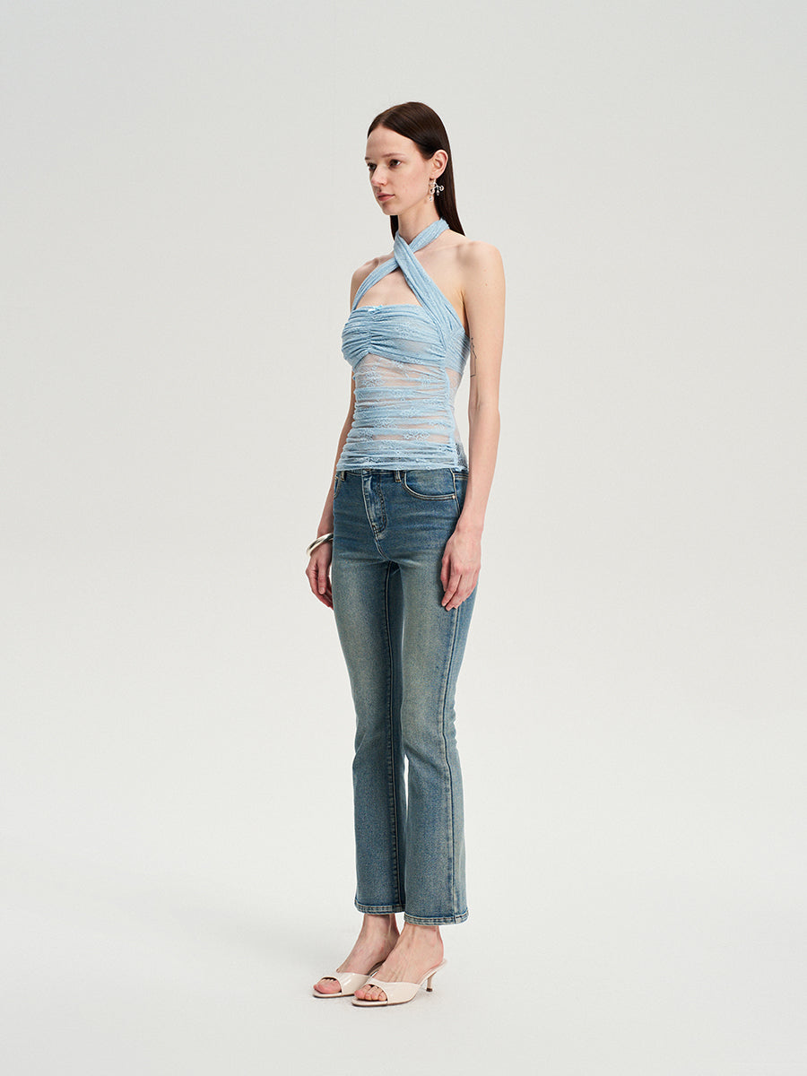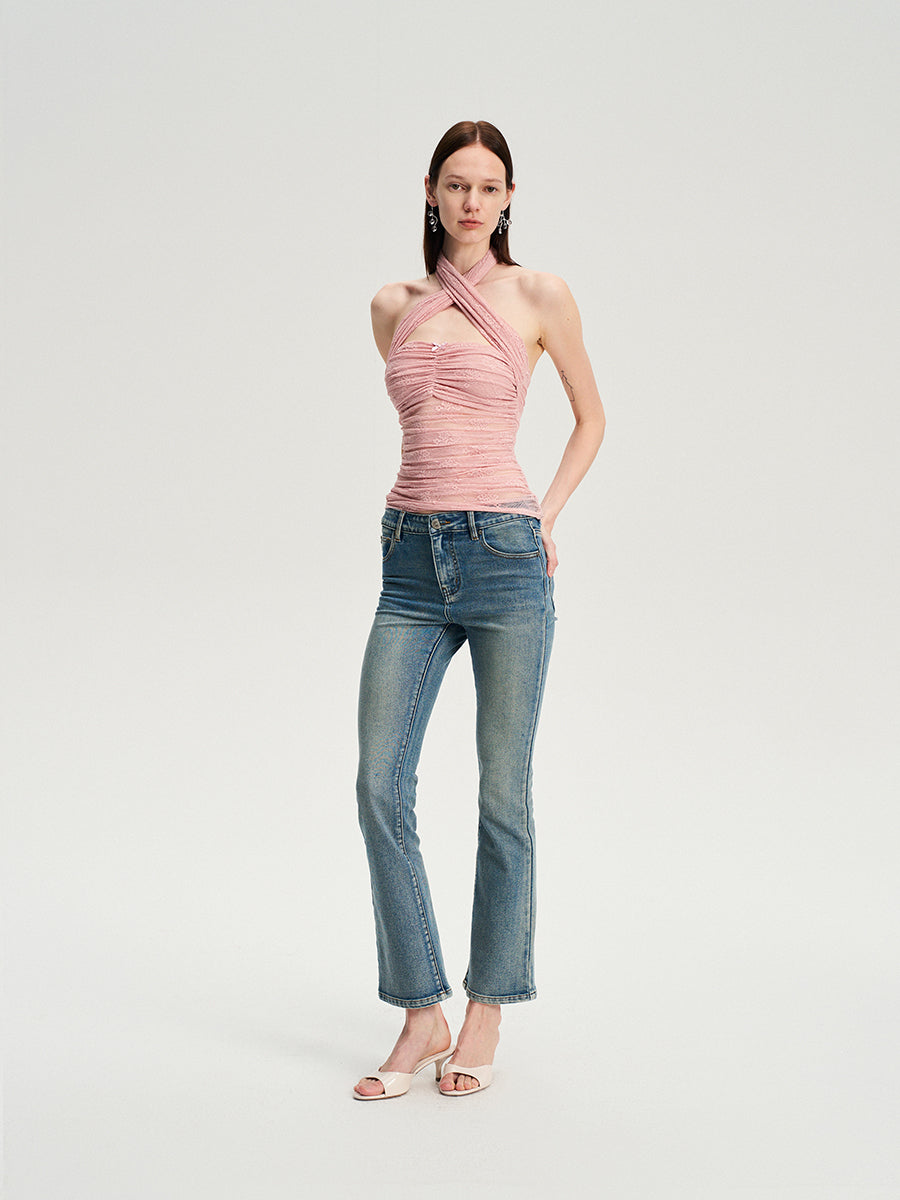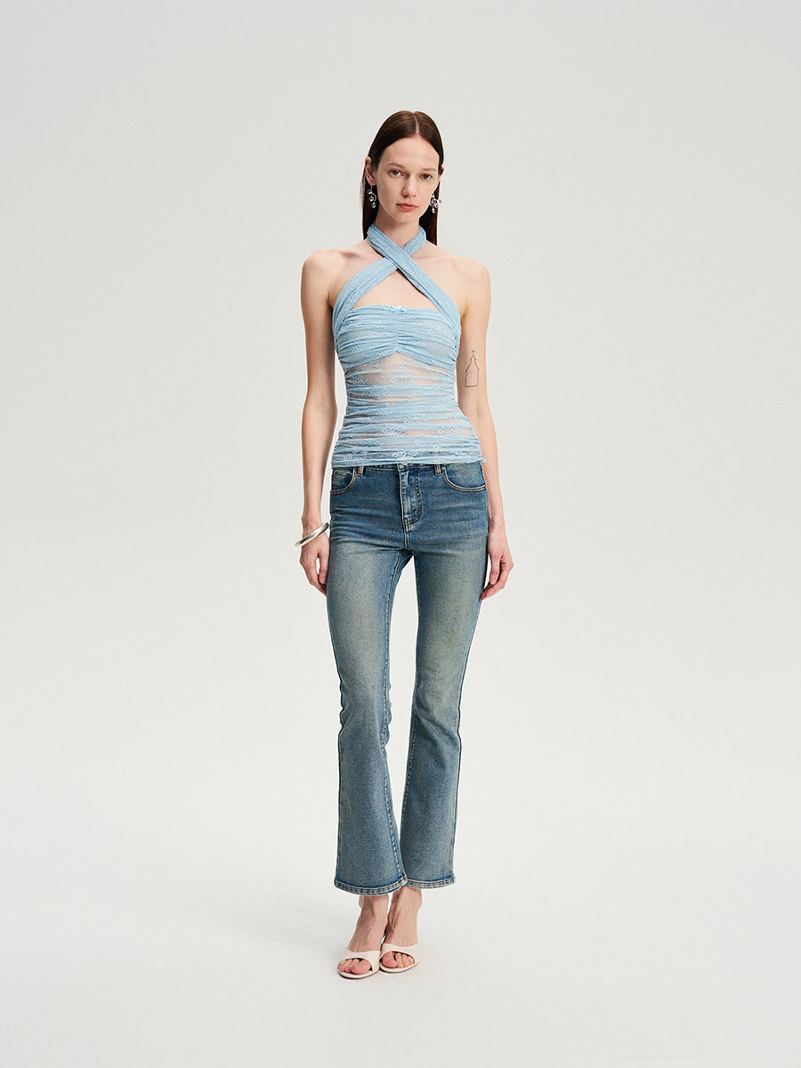 Dotyears Two-tone lace bow charm with cross-neck suspenders