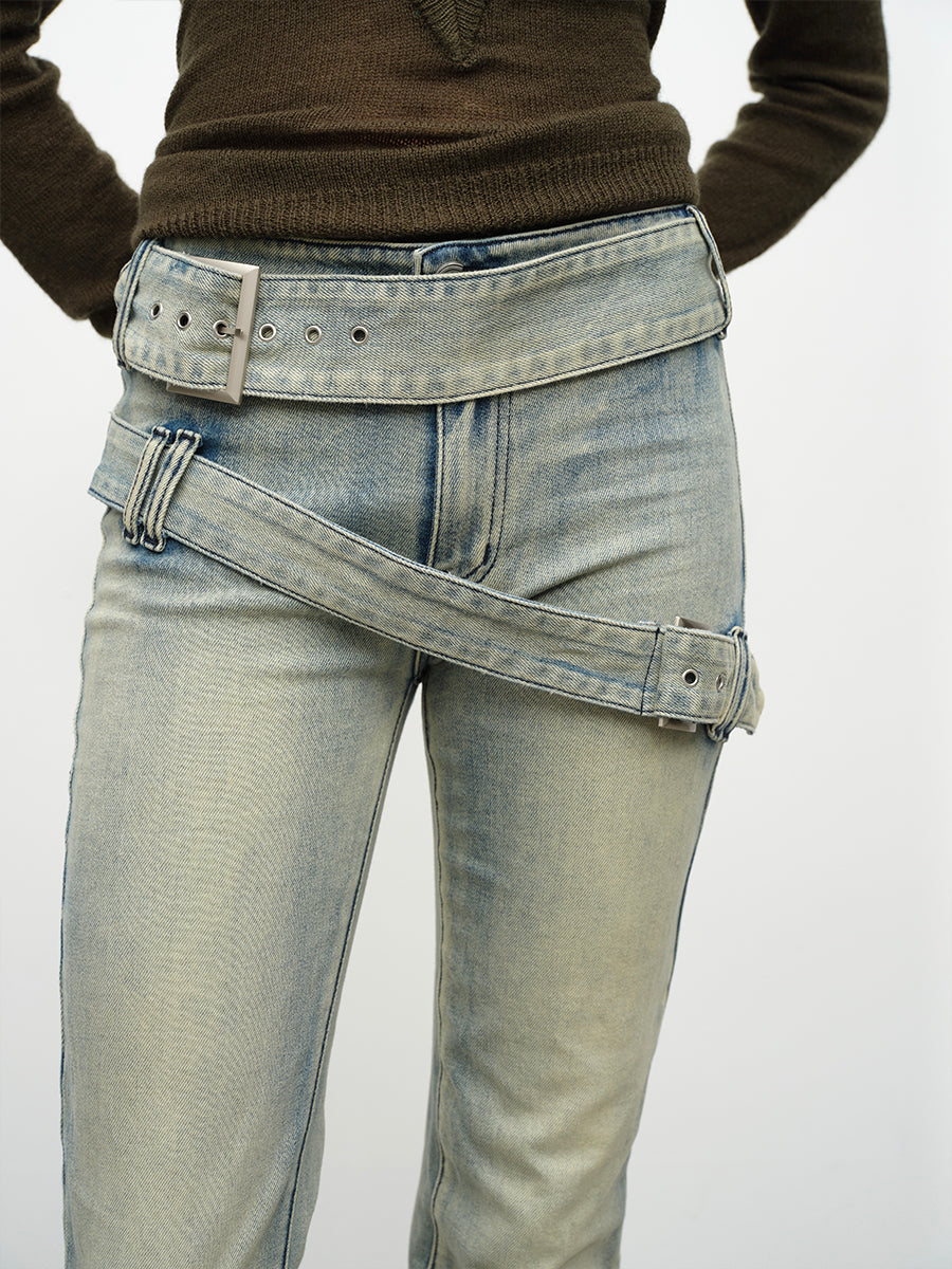 Dotyears24AW Double-belted bootcut jeans