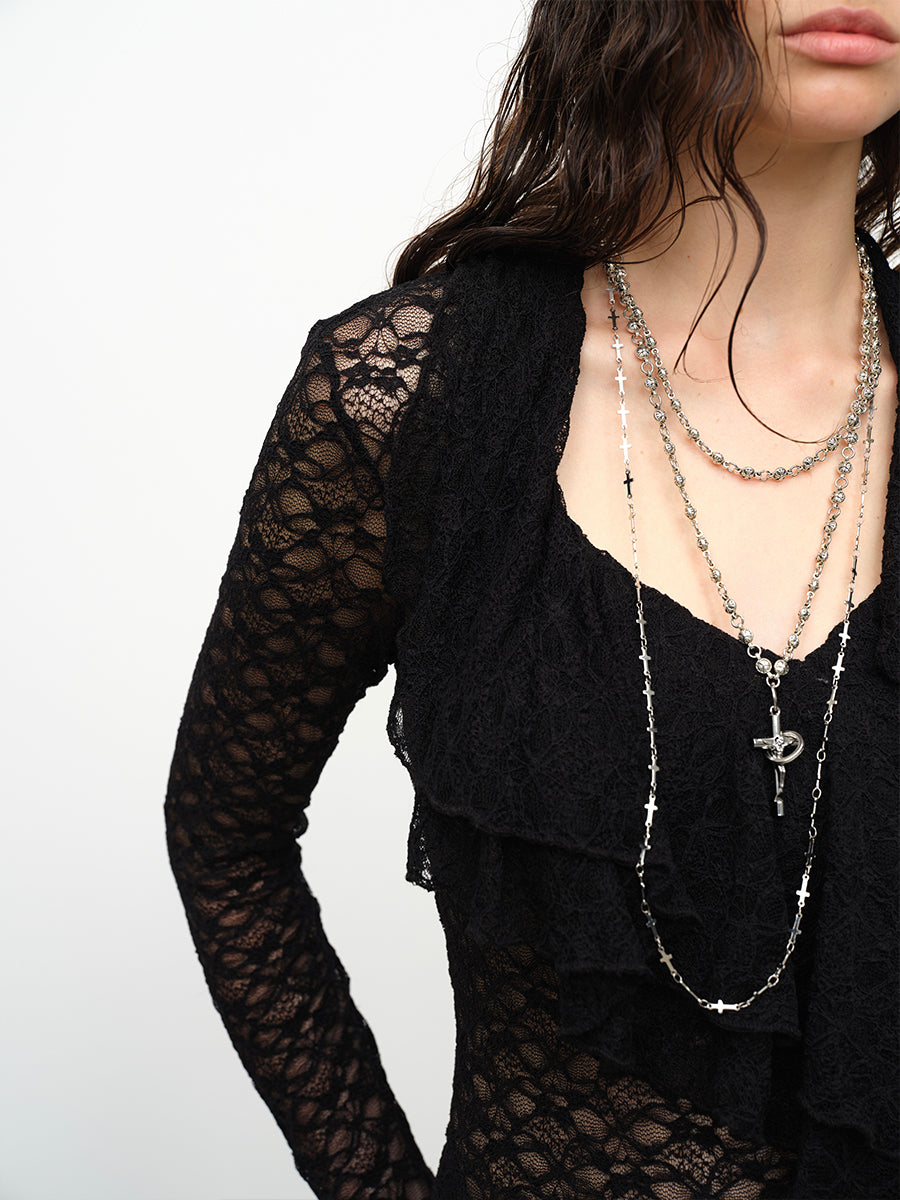 Dotyears24AW Lace pullover double spliced mesh