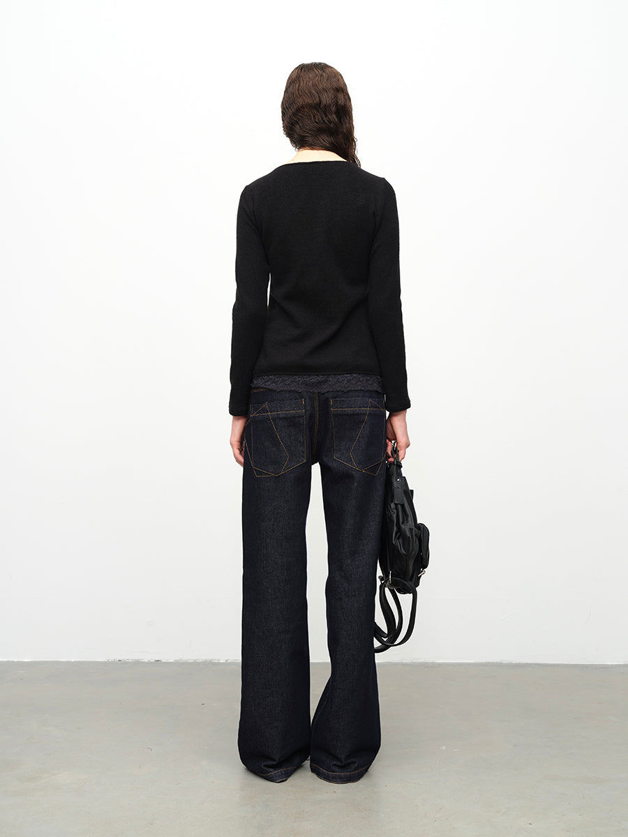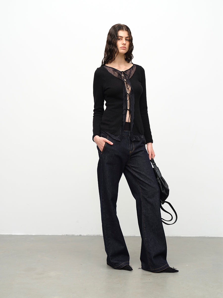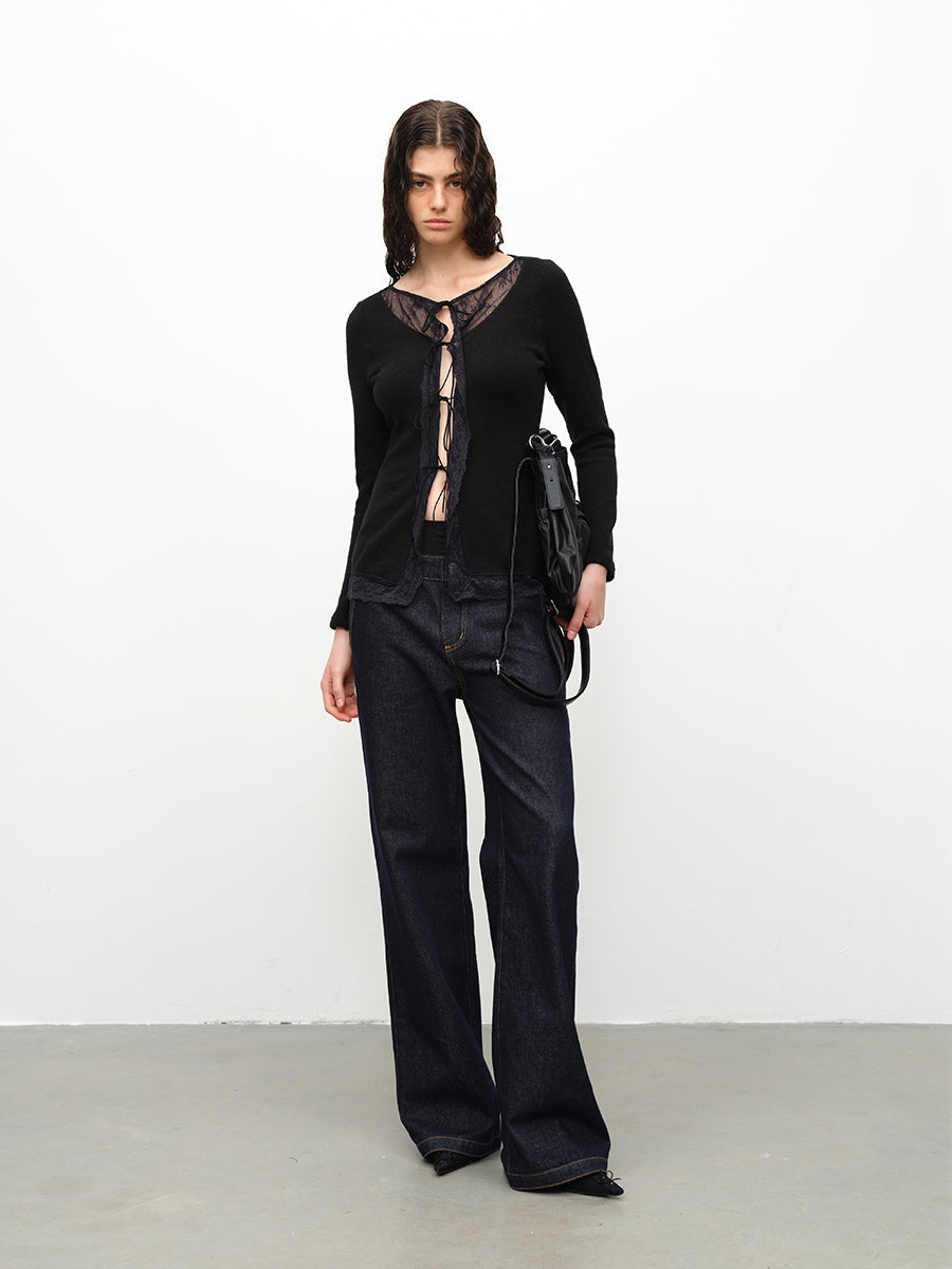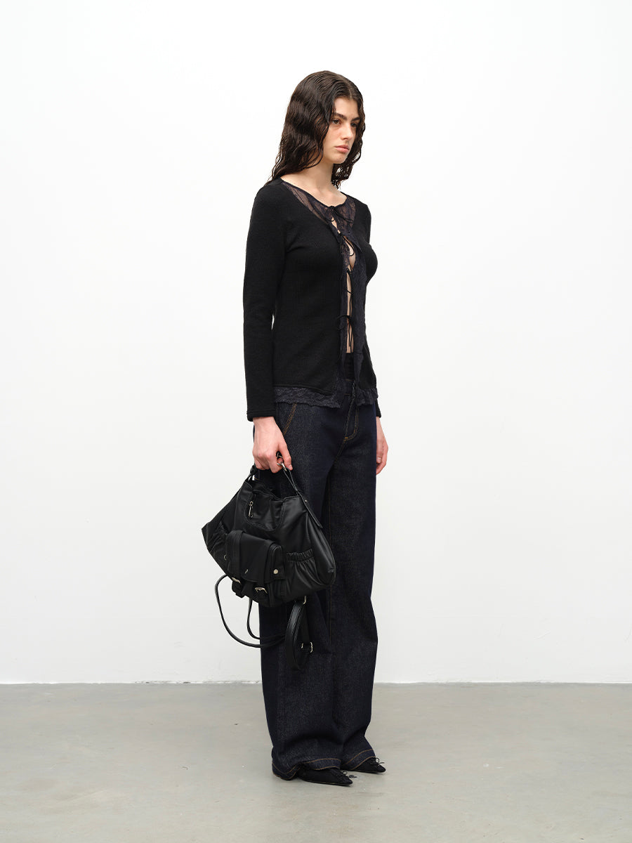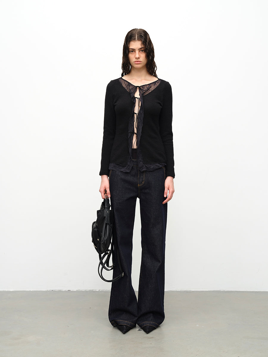 Dotyears24AW Wool lace patchwork lace-up knitted cardigan