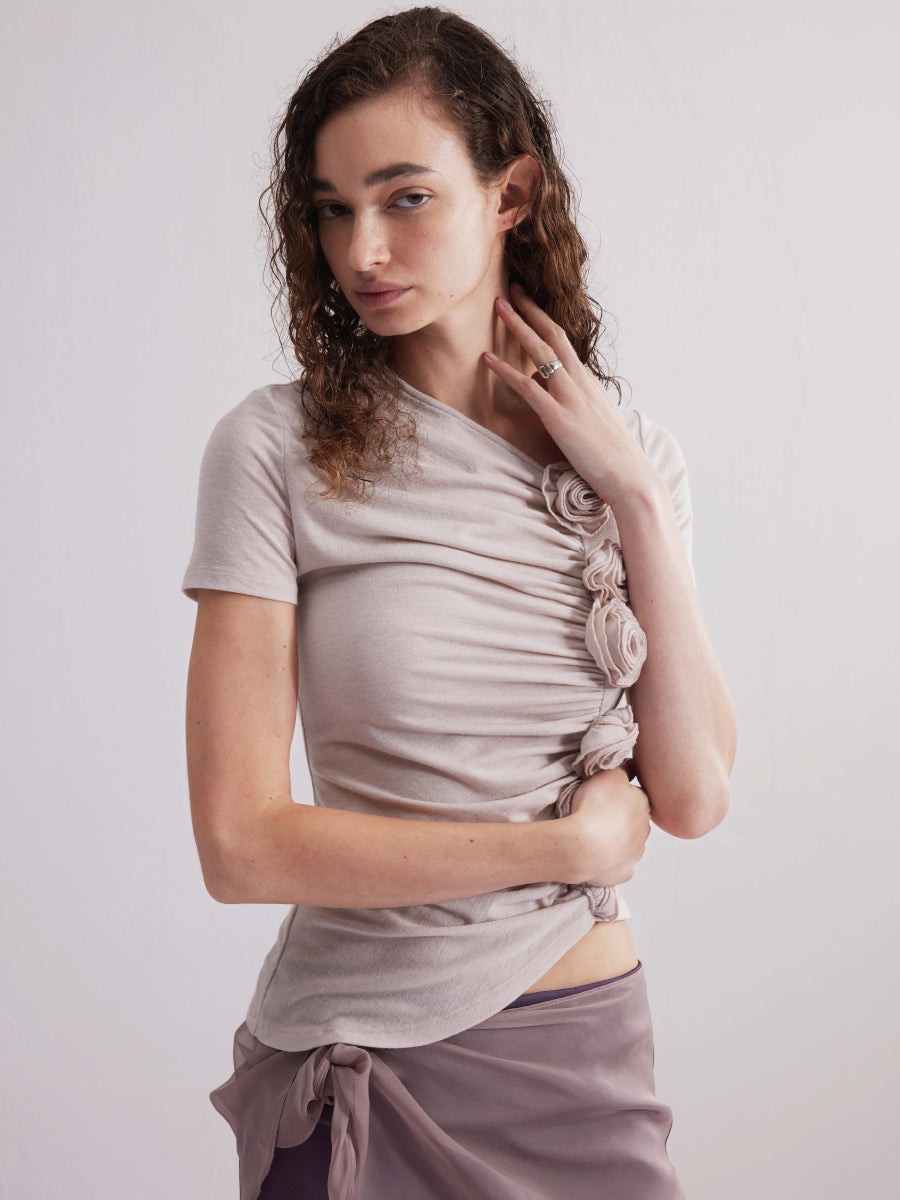 Dotyears24ss Commuter wool purple grey handmade floral top
