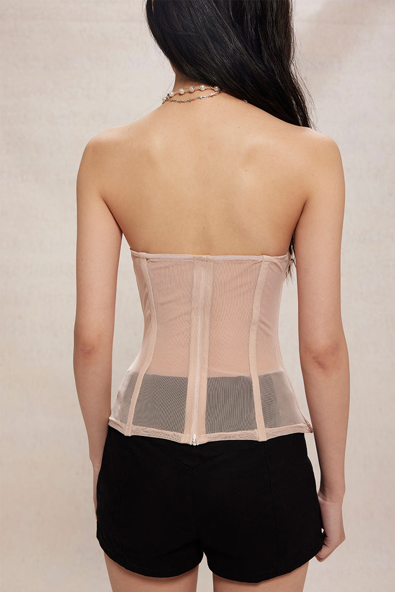 Dotyears24ss Mesh hot drill herringbone craft nude slim corset