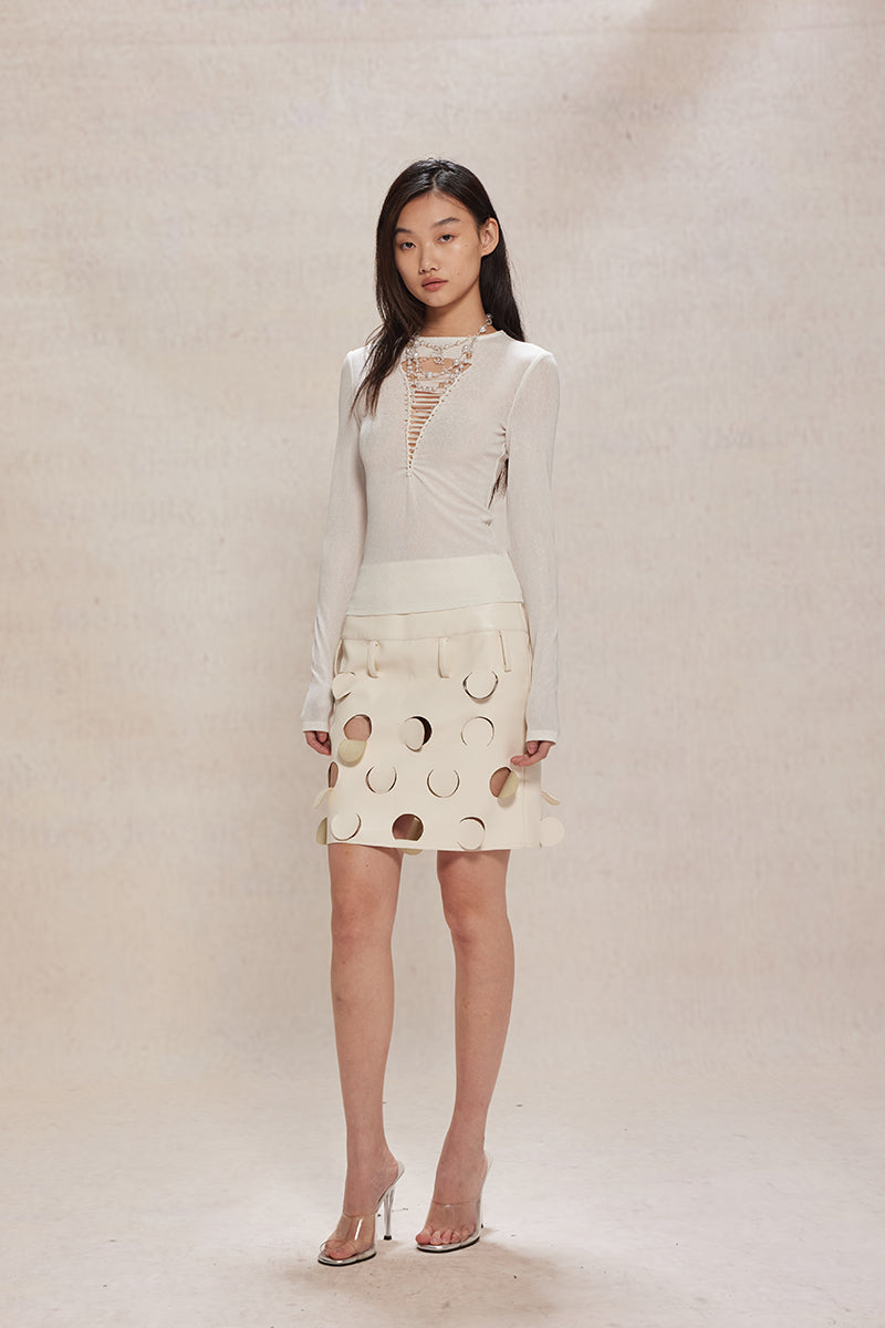 Dotyears24ss White devoré strappy top with a sexy design on the chest