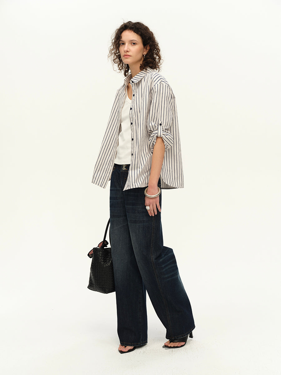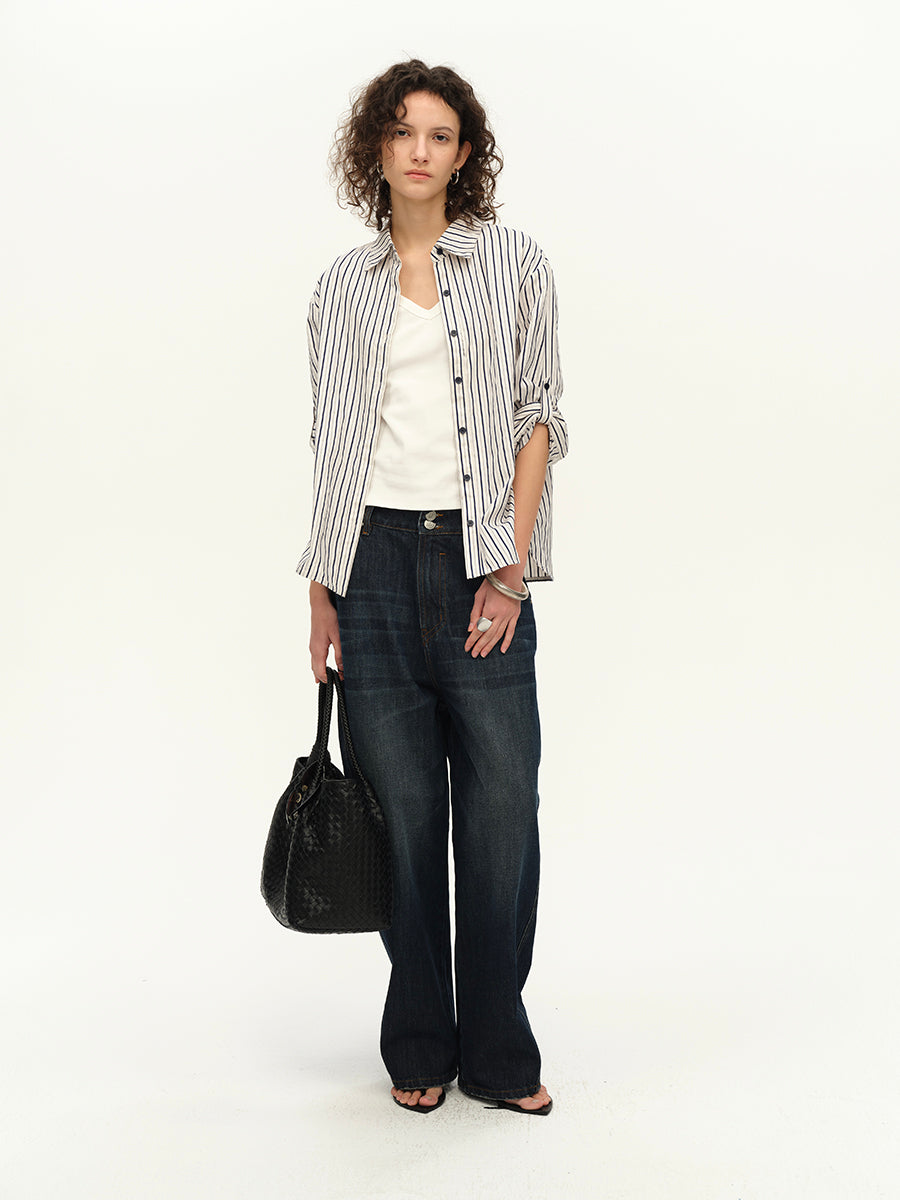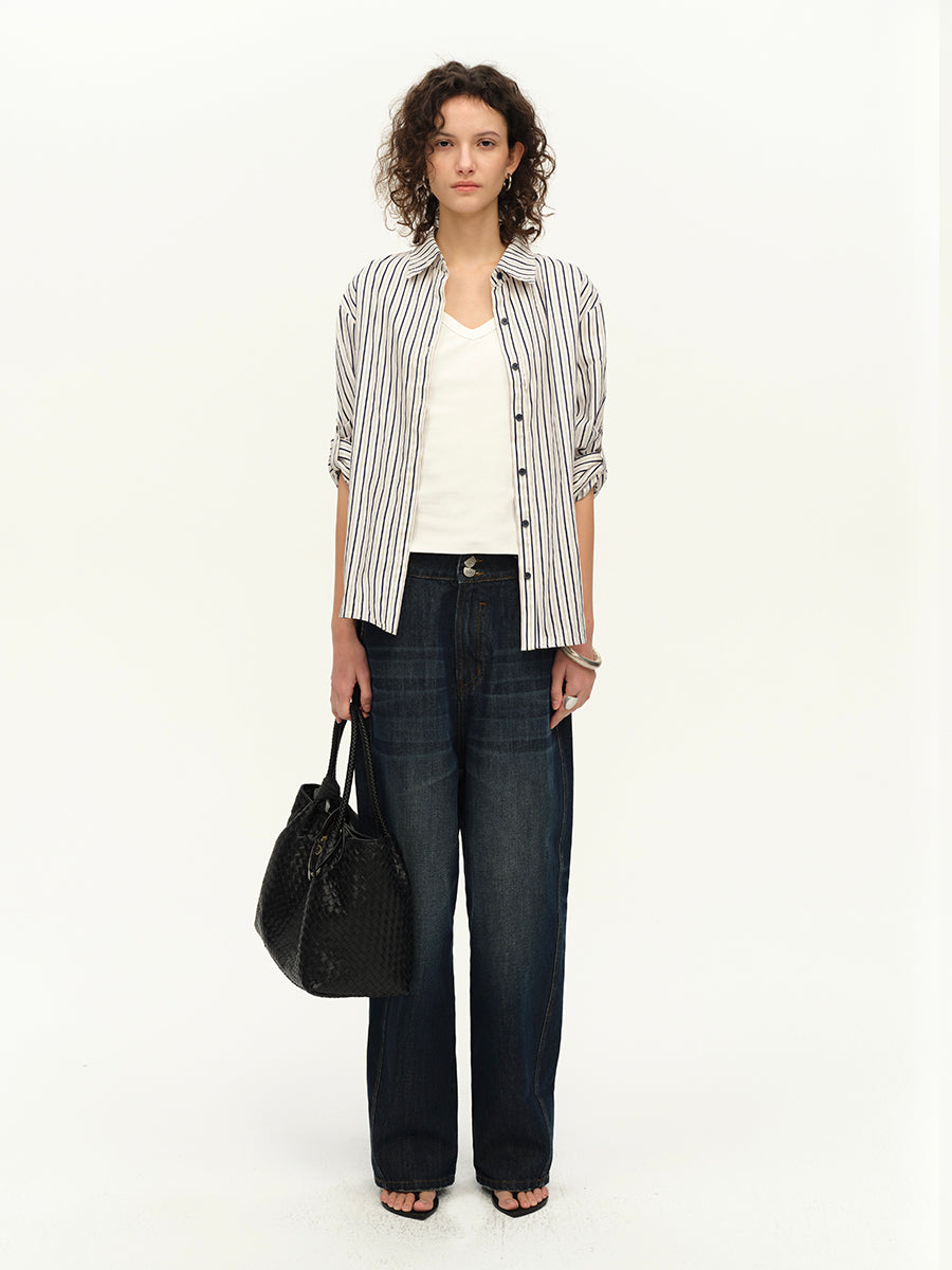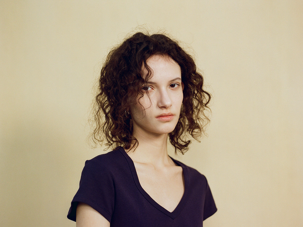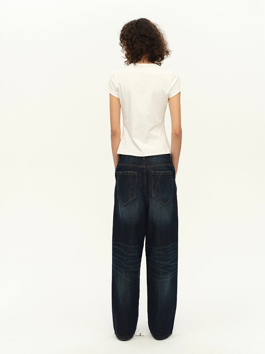 Hughum Curved V-neck Khmer knitted short T-shirt