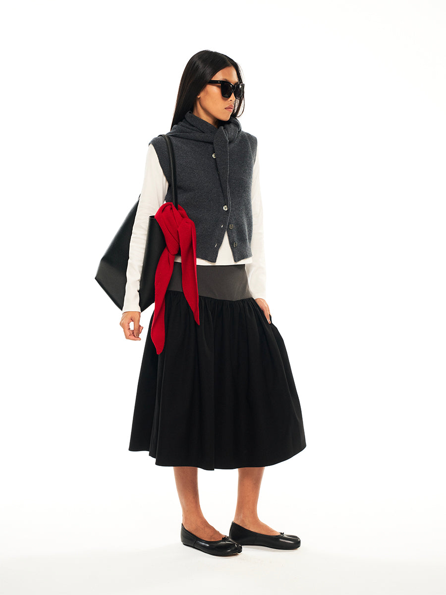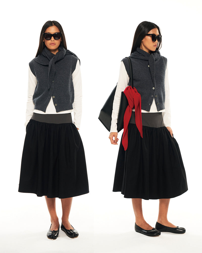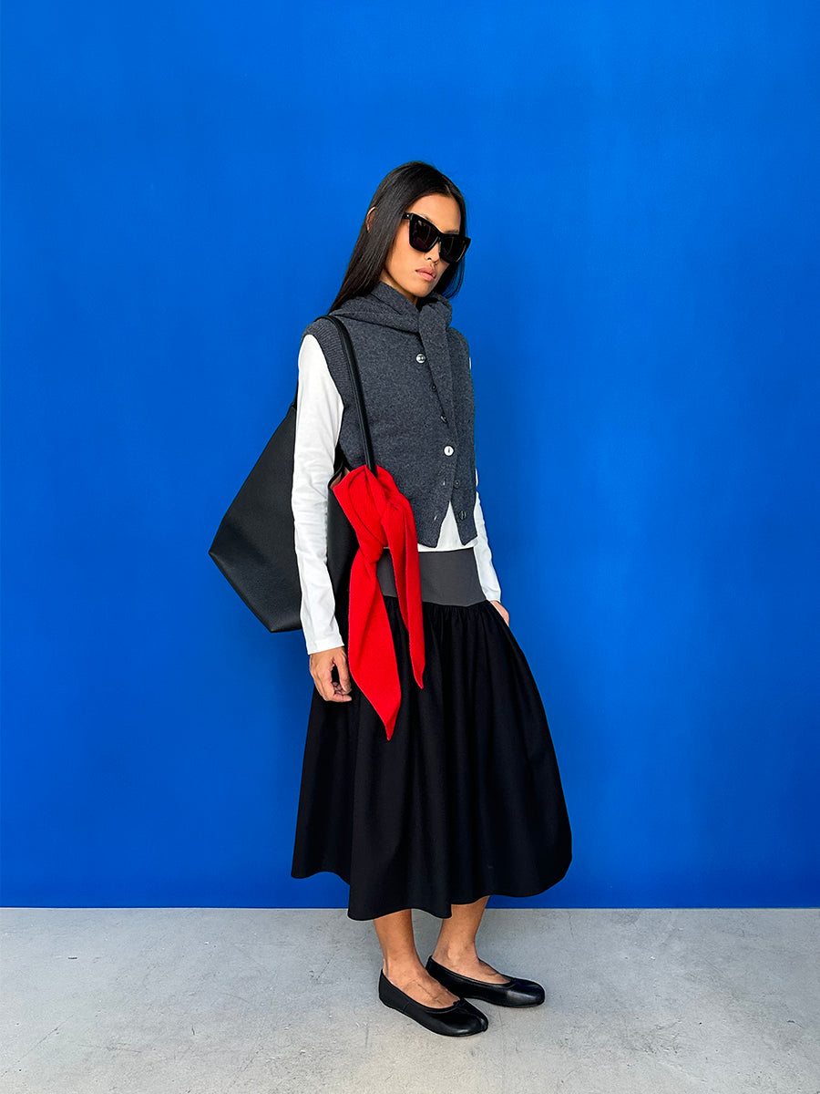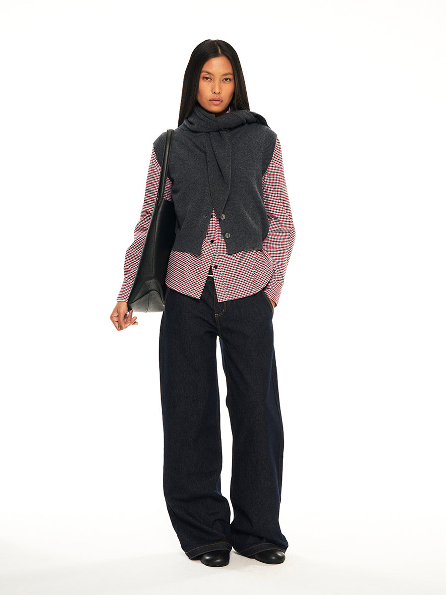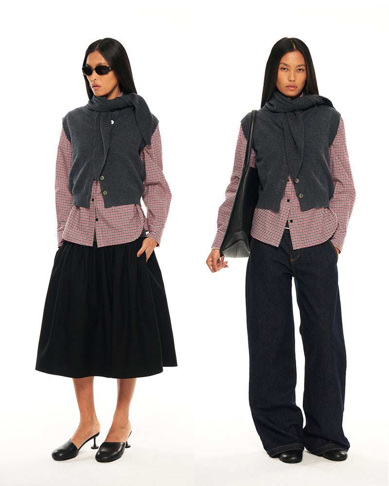 Hughum Grey 100% wool knitted vest over top
