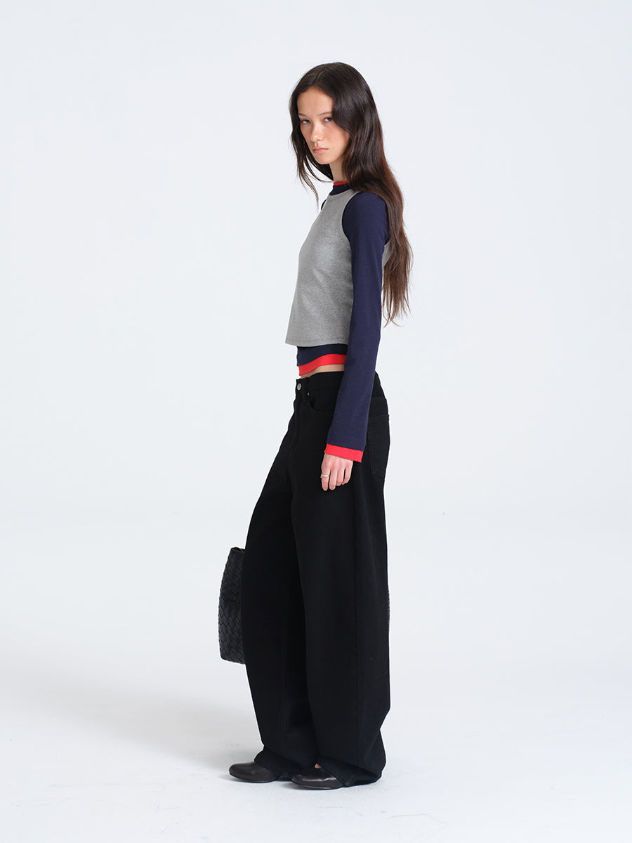 HUGHUM Red and Blue Color-Block Knit T-Shirt