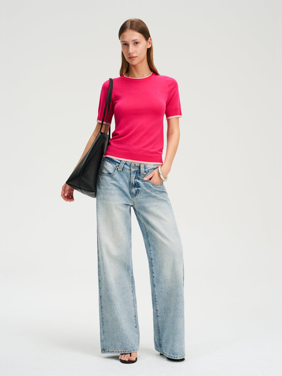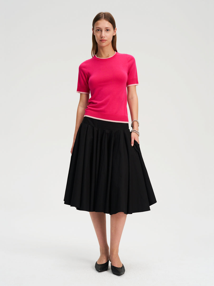 Hughum Two-tone contrast-panel Tencel knit T-shirt