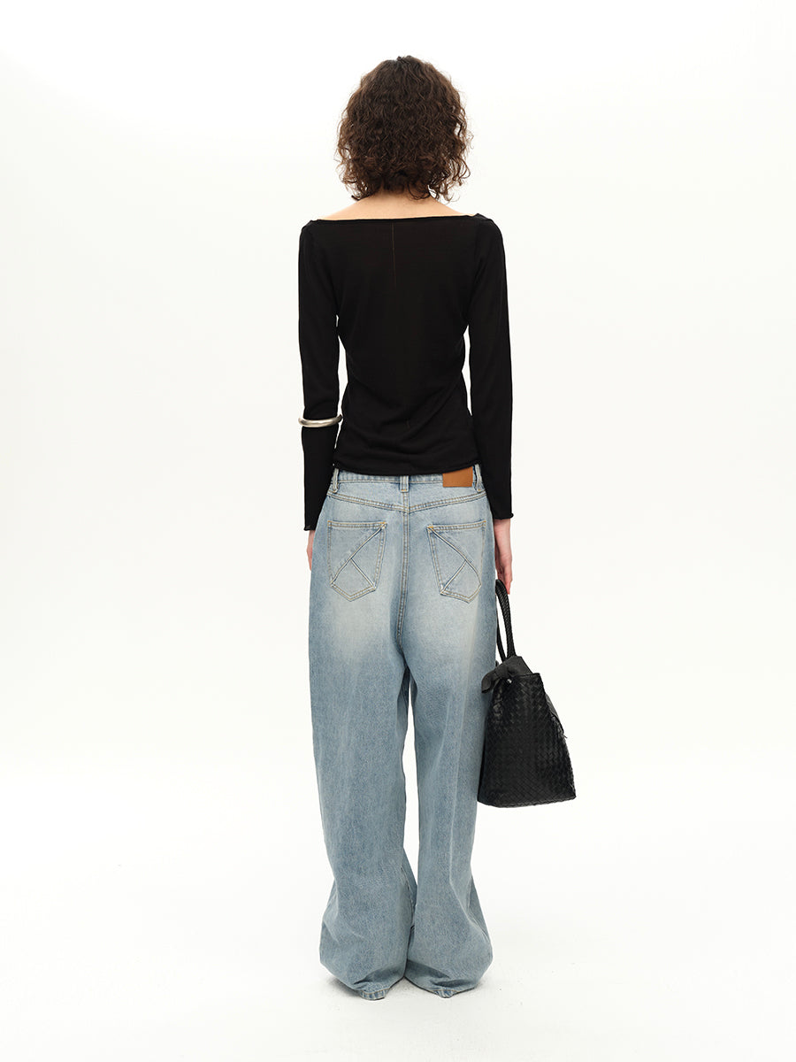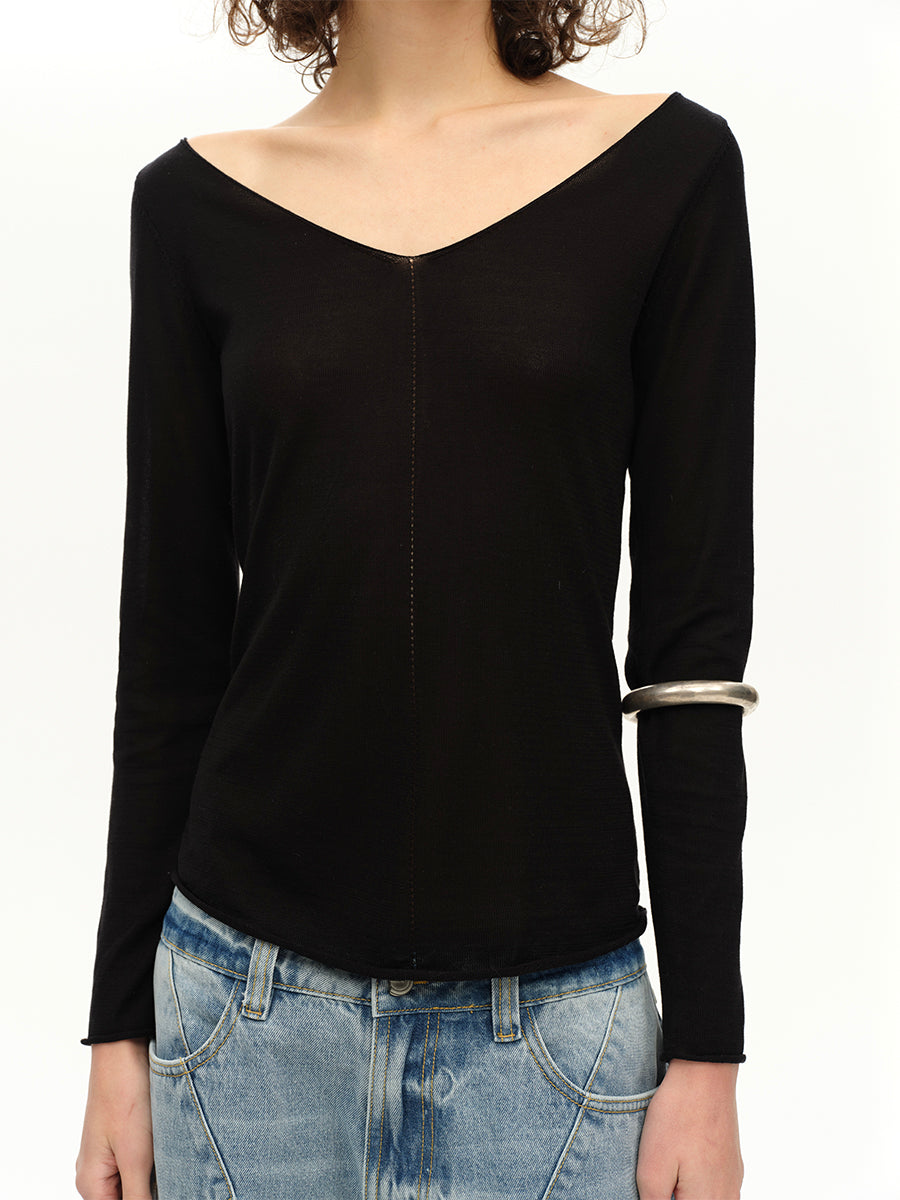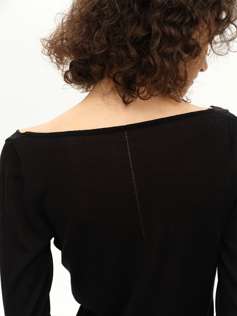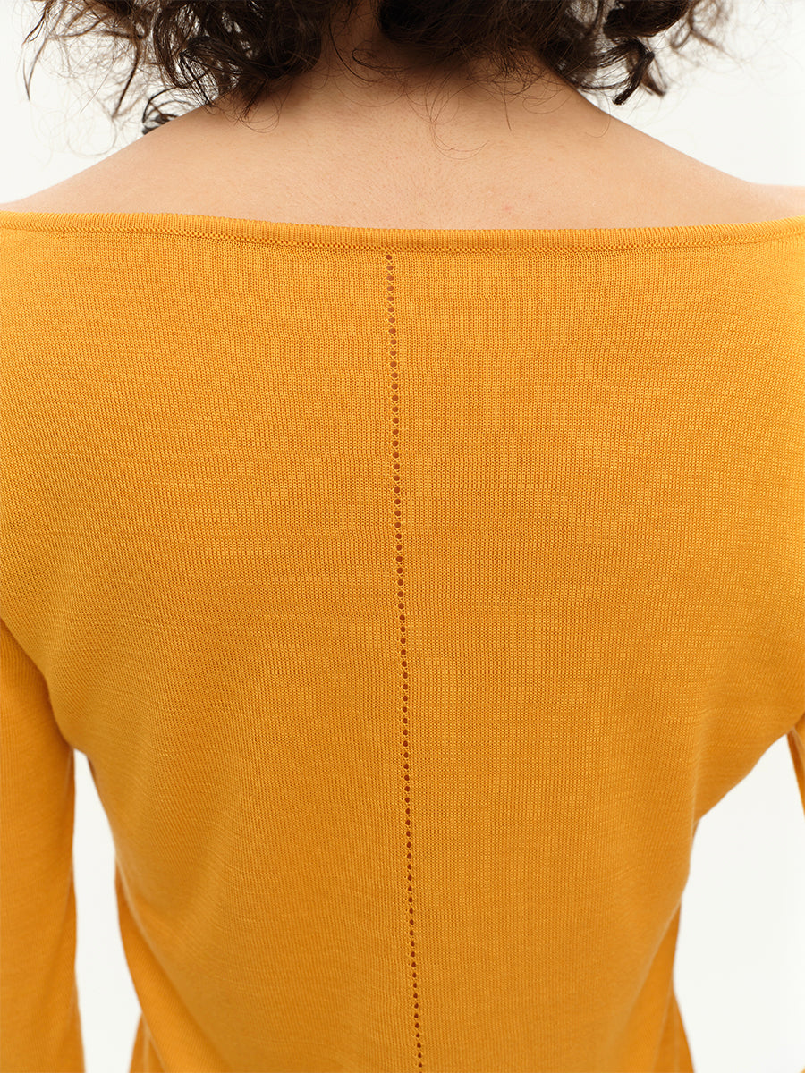 Hughum V-neck Tencel knit cut-out yellow black long sleeves